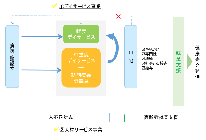 当社は医療・介護を中心とした人材サービスとデイサービスを運営しております。 今般、「地域ヘルスケア産業支援ファンド」からの投資資金と人材を活用し、「訪問看護併設型中重度要介護者向けデイサービス」運営事業を展開していきます。入院や施設から在宅に戻さざるをえない高齢者の在宅復帰支援として、健康維持・機能改善のためのリハビリ、生活動作に特化したリハビリ等のサービスを行います。またこれからの高齢者に向け、就労支援事業を推進していきます。在宅復帰を支援し、高齢者の雇用を創出促進することで、医療介護費の抑制と九州地域経済の活性化に貢献します。