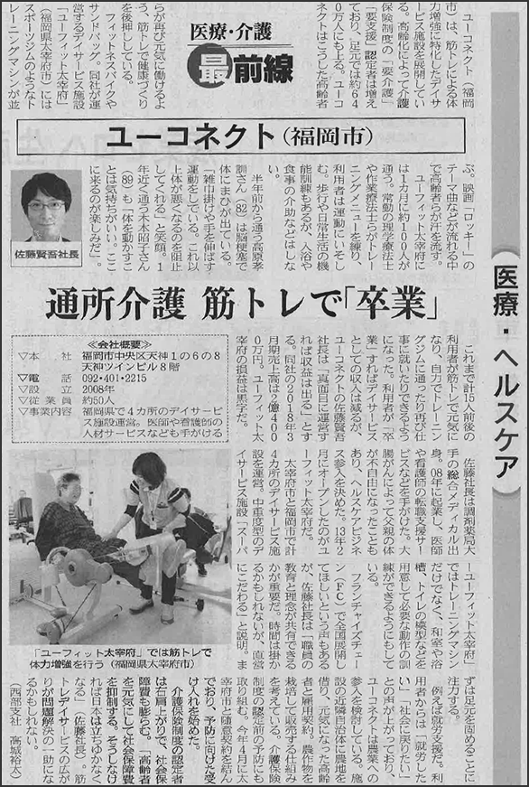 弊社ヘルスケア事業「ユーフィット」が「日経産業新聞」に取り上げられました。